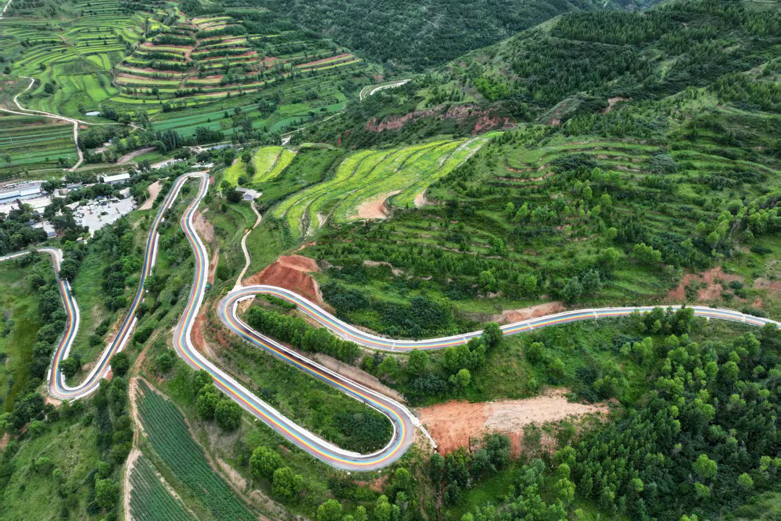 驱车行驶在石窑寺经新和至上梁旅游公路上,蜿蜒曲折的公路平坦舒适,造型别致的墙面设计、色彩斑斓的公路主题,沿途自然景观、风土人情和历史文化融为一体,让游客沉浸式领略隆德美景。为进一步体现旅游公路主题元素,该项目还在全路段路面喷涂红黄蓝彩虹线,并加入“我爱隆德” “520、1314”的设计元素,构成了一条独具特色的旅游风景线。